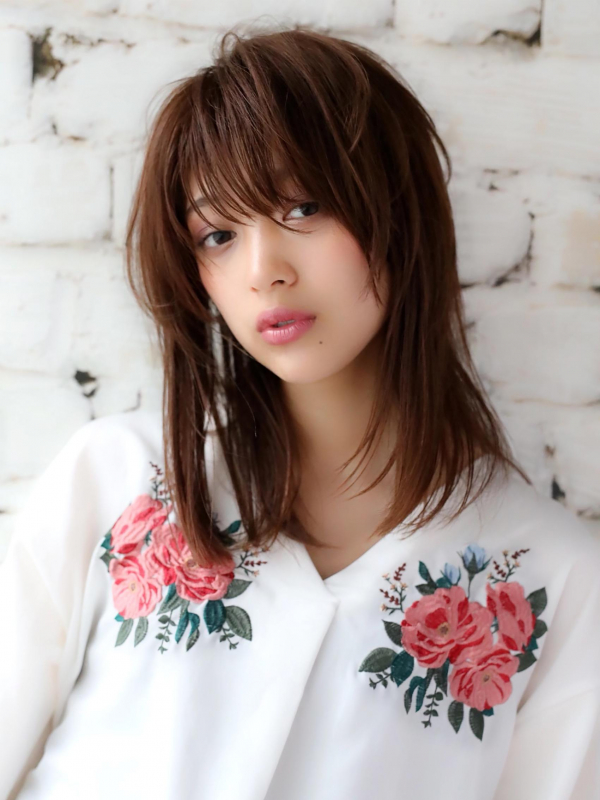ミディアムレイヤーは、動きのある軽やかな印象を与え、顔周りをシャープに見せる髪型です。