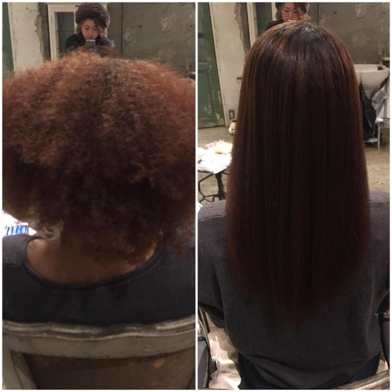 アイロンでまっすぐにしたこともなくて念願の縮毛矯正をしに来てくれました。