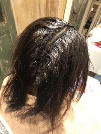 あとは部分的にみて毛先の状態を見ながらお薬選定とタイム設定を変えて