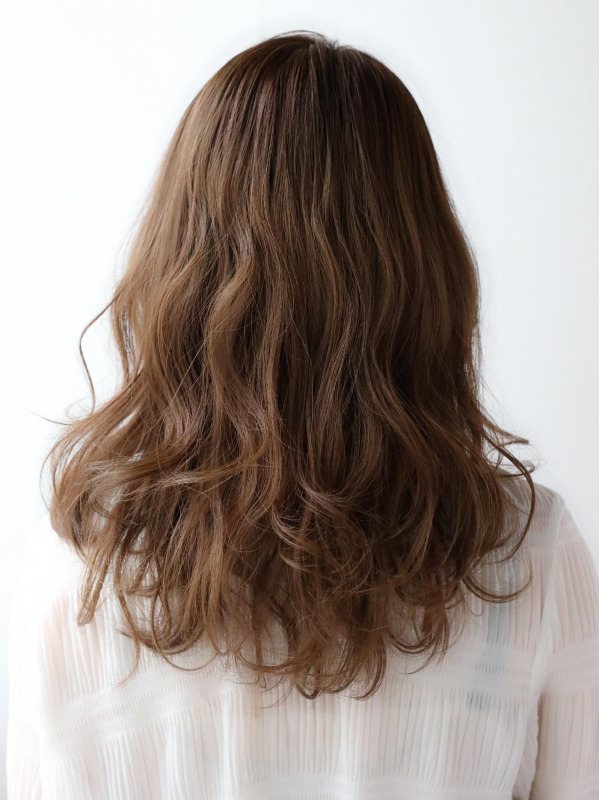 ゆるふわのウェーブにさりげないシースルーバングは、大人女性にもOKのスタイルです。