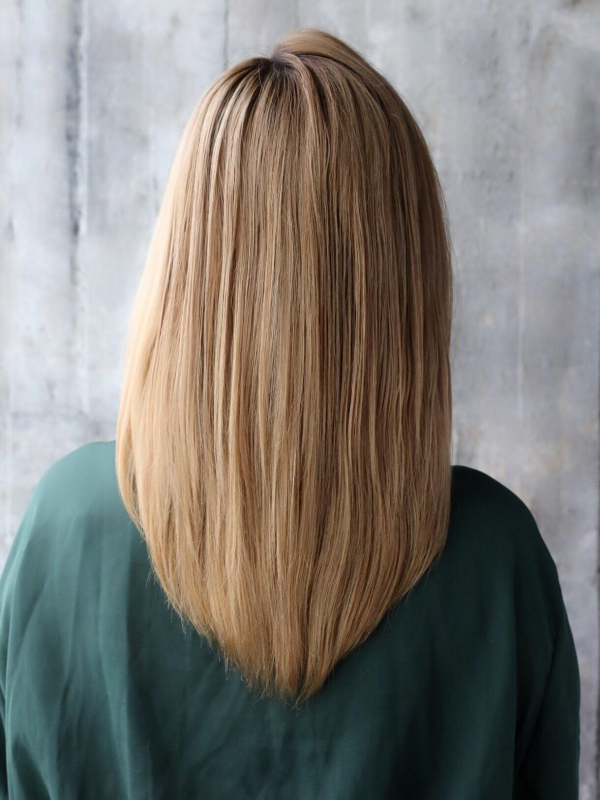 スタンダードなストレートヘアも、ハイトーンカラーならたちまちオシャレなムードになりますよ。