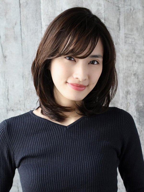 清楚なムードの黒髪×ミディアムは、重くならないよう、トップと顔周りにレイヤーを。