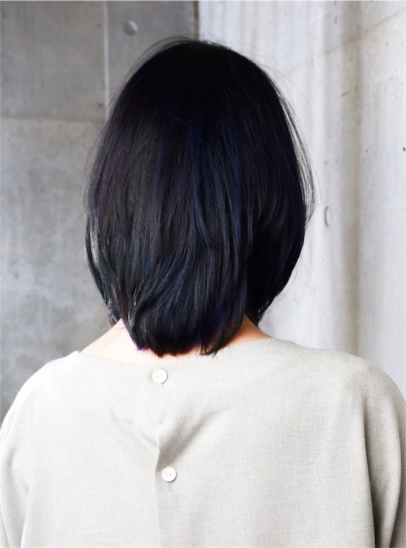 たっぷり入れたレイヤーカットとブルーブラックに個性が光るスタイルです。