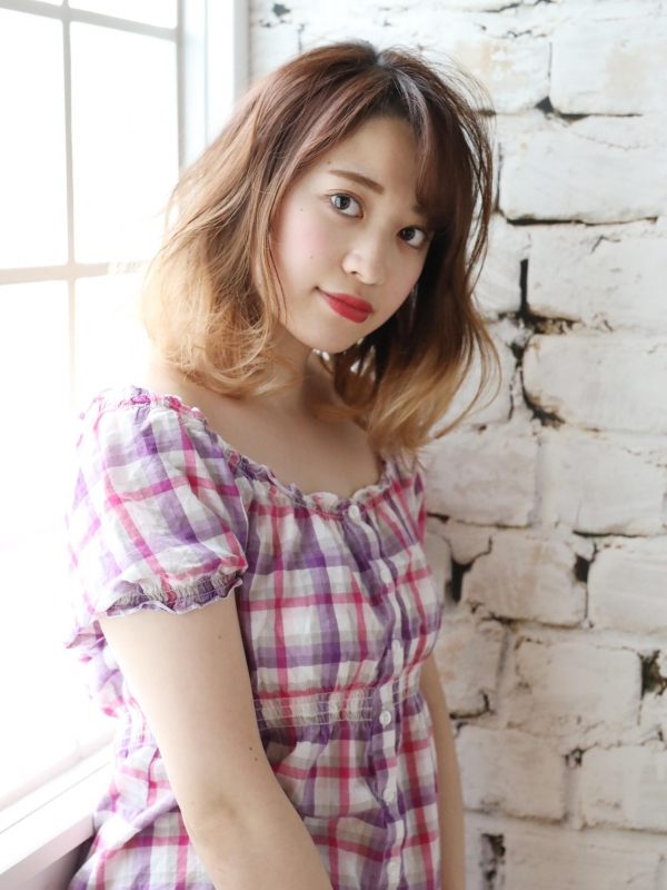ふんわりウェーブと明るい毛先が軽やかなミディアムヘア。