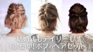 今流行りのボブは、短い長さでフレッシュな印象が、魅力的なヘアスタイルです。 しかし、髪の長さが短いことから、 ヘアセットしたいけどどうすればいいの…?と悩む人もいるでしょう。 そこで今回は、 ◯流行りのボブのヘアセットのポイント◯結婚式にお…