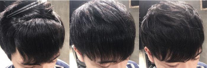 特にメンズなどショートヘアでスタイリングをする方は全体に縮毛矯正をかけてしまうと、髪全体のボリュームがダウンして、本来スタイリングの際にボリュームが欲しいトップや毛先の動きがスタイリングしにくくなってしまいます。ですが、例えば部分縮毛矯正でクセが気になりやすく、ボリュームを抑えたい「前髪内側」「顔まわり」だけ縮毛矯正をかければ、そこ以外は地毛でボリュームや動きを再現しやすく、縮毛部分は綺麗に収まる!