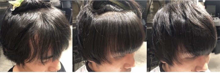 頭全体に縮毛矯正をかける訳ではないので、普通の縮毛矯正をするよりも自然な仕上がりになるのが魅力です!特にメンズやショート、ボブヘアなど髪の短い方は縮毛矯正をすると毛先がピンピンになりやすく「不自然な仕上がり」になりやすい。そこで、部分縮毛矯正をやって縮毛の範囲を最小限に抑えるとヘアスタイルにも影響しずらく自然な仕上がりで、しかもクセが気にならなくなるんです!