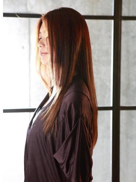 大人っぽい横顔がたまらないワンカールのロングヘア。