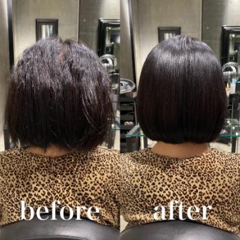 これをしっかりと見極めてお客様自身が感じているお悩みの原因とプロ視点から見た時の髪の状況確認をしっかりして違いを説明し施術を行い、且つ髪への負担を最小限に抑えて髪全体が一体感のある艶のある髪質になれているか、一回の施術だとダメージ的に難しい場合はケアを繰り返して髪の一体感を出すことだと僕は考えています。