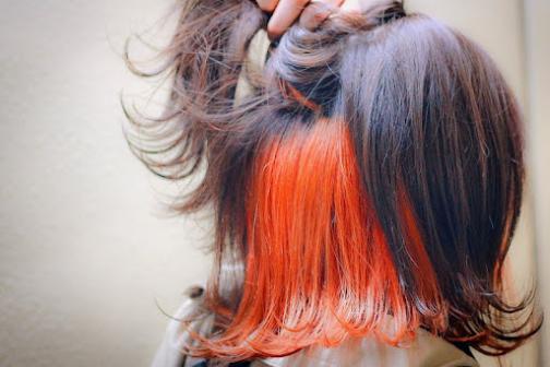 サイドは耳上から、バックは半分までカラーを入れると、外ハネした毛先からオレンジがちら見えしておしゃれですよ!