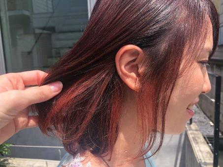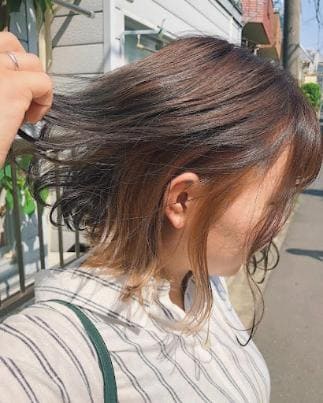 耳後ろから襟足にかけて少ない範囲にインナーカラーを入れると上品見えします。