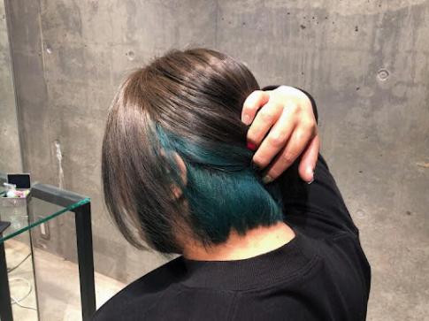 襟足部分のみにインナーカラーを入れると、風が吹いたときにチラっと見えるのが◎