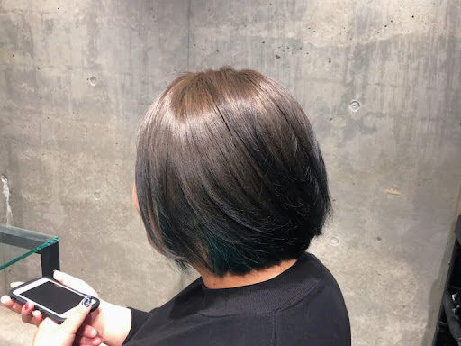 マーメイドブルーのインナーカラー×白髪隠しボブは40代の個性派さんに