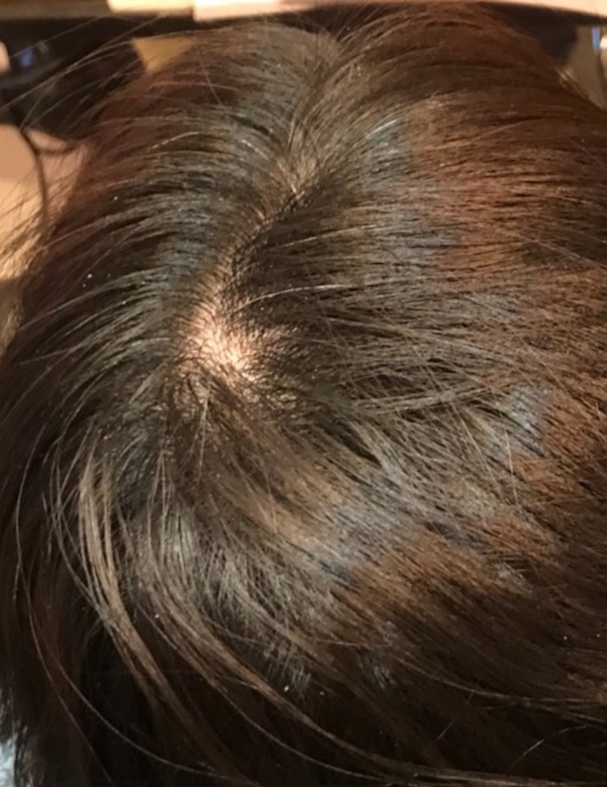 この写真は私の頭頂部です。白髪が年々増えてきて悩みの種です。