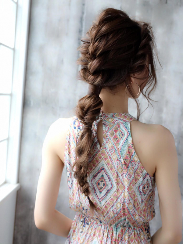編み込み×後れ毛で、たっぷりこなれ感を演出するのがポイント。