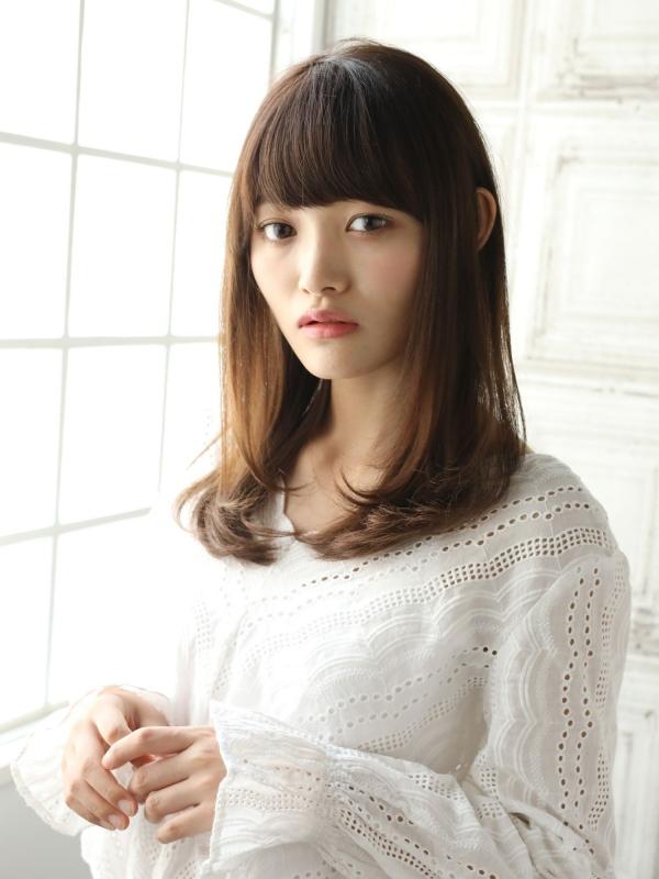 今っぽいシースルーバングと合わせた、黒髪ストレートロング。