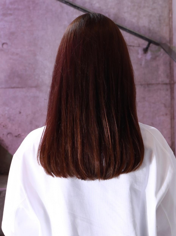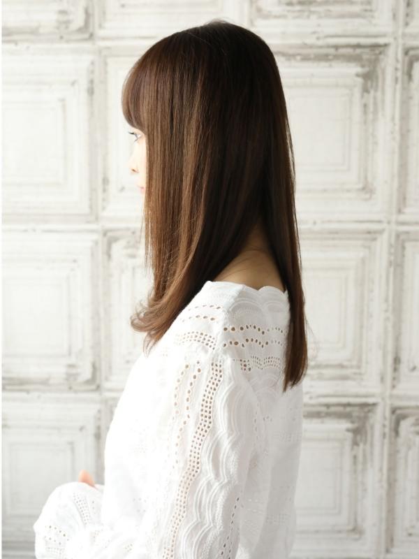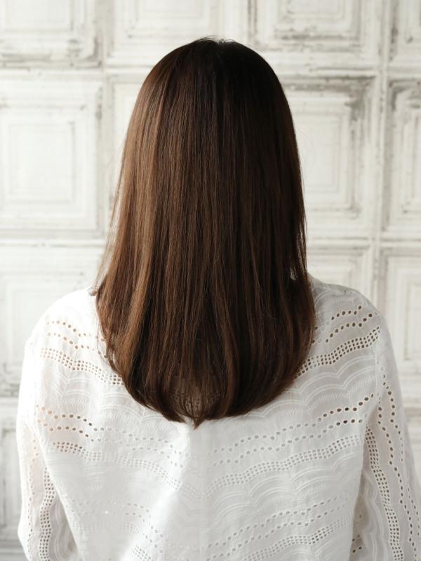 後ろ姿が真っ直ぐラインのロングヘアは、しっとりした重さが出るのが特徴です。