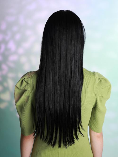 毛先をぱつんと切ったような、後ろ姿真っ直ぐラインのロングヘア。
