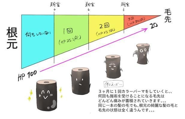 と言った意味があるものです。物凄く高いトリートメントを1回やっただけでは髪質改善にはなりません!傷んだ髪を一時的に綺麗に見せるよう誤魔化しているだけです。髪質改善の取り組みは