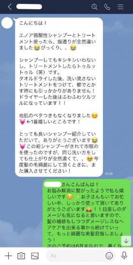 さらに「ツルツル」「艶やか」「しっとり」まとまる髪にしてくれるのが「エノア弱酸性トリートメント」です。より、髪にダメージや悩みを感じているエノア弱酸性トリートメントさせていただいています。