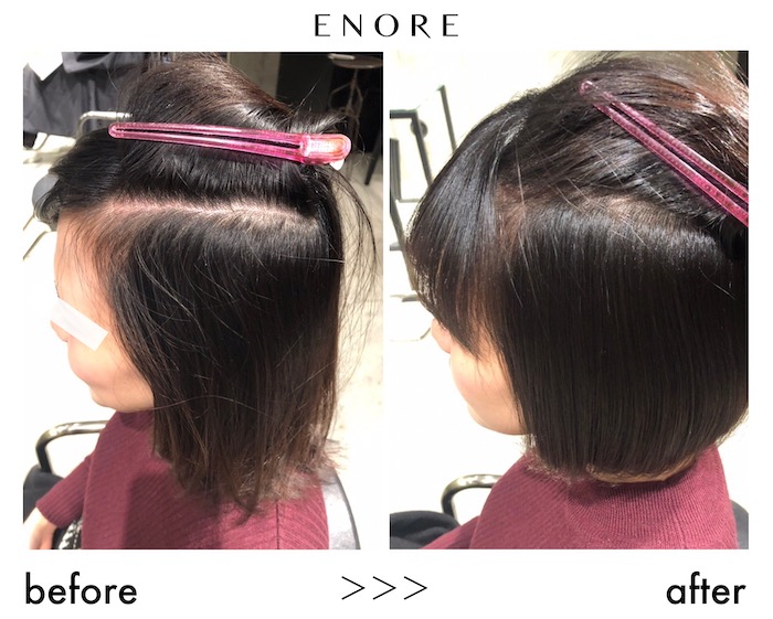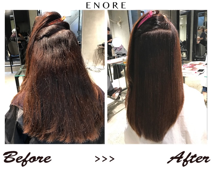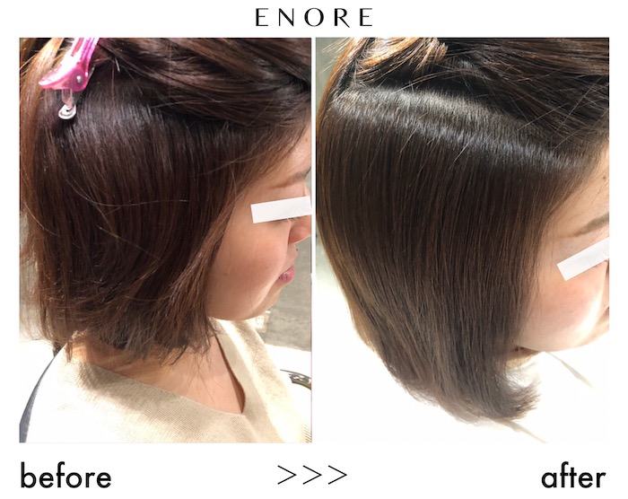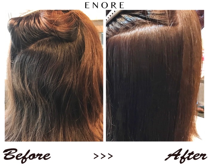 ↓「縮毛矯正はしたくないけど、クセを落ち着けたい、、。」と言う方にはこちらのエノアオリジナルメニューがおすすめです。