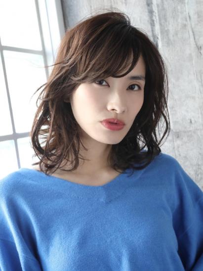 ほつれウェーブでこなれ感のあるミディアムスタイル