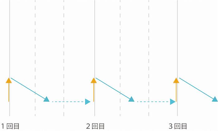 期間を3ヶ月空けて3回行った場合(効果が0になってから)