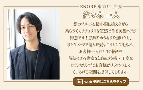 こんにちは!髪質改善が得意な美容院ENORE(エノア)東京店店長佐々木です!