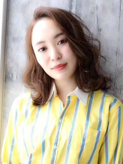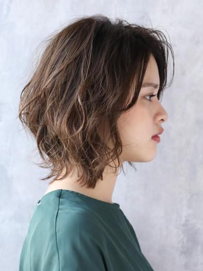 ひし形シルエットで小顔効果あり! ゆるパーマのくびれミディ