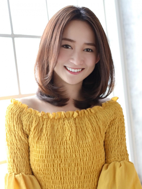 センターパートとローレイヤーで前髪なしのミディアム×ストレートを一新!