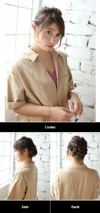 ねじり編みとお団子で作ったセミロングのアップヘアセット。