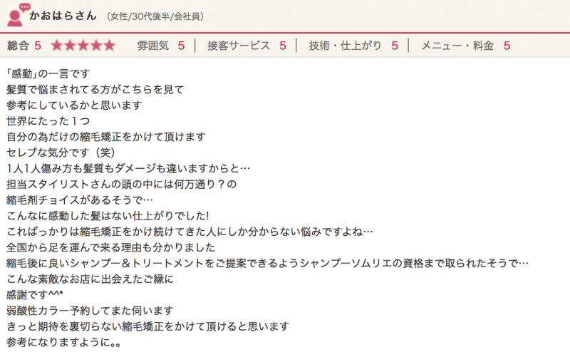 という事で、髪の毛のお悩みを抱えてご来店されたお客様の感想をご紹介致します。随時更新中!!