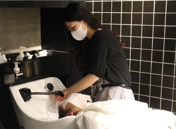 薬剤が浸透したらもう一度エノアオリジナルシャンプーで髪を優しく洗い、流していきます。