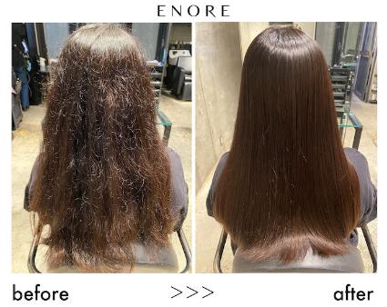 かなり髪がダメージしている方は1回だけだと効果がイマイチ感じられなかったり、2週間くらいで落ちてしまうこともあります。そんな方は酸熱トリートメントの回数を重ねるうちに髪の状態が徐々に良くなっていく事もあり、実際エノアでも「3回目に凄く髪の変化を感じた!」など続けていく事で髪の変化を感じていただく事もあります。なので、もし不安がある時は美容師さんに「1回でどのくらいの効果が期待できるか?」「何回くらいすればしっかり効果が出そうか?」など事前に確認しておくのも◎