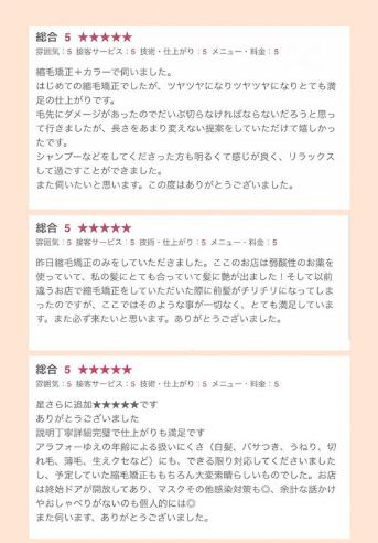 そしてそれにプラス、美容師さんと髪の状態やクセのお悩みを共有するために「縮毛矯正やカラーをかけている頻度」「お家でストレートアイロンを使っているか」「クセが気になるのは全体か?部分的にか?」などをしっかり伝える様にしてください。もちろん。気になる事は美容師側からもお尋ねします!
