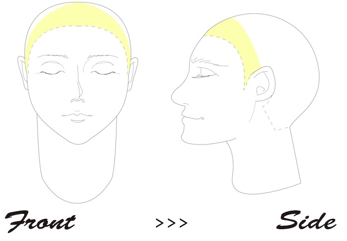 などは顔まわりや前髪だけ(図の黄色い範囲)縮毛矯正をする「部分縮毛」をするのもおすすめです。