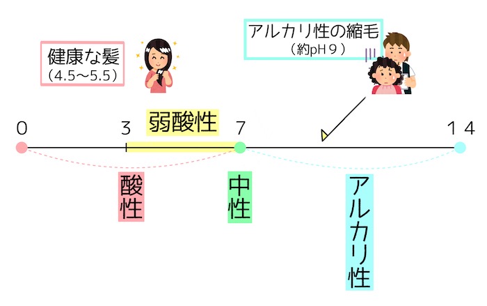 弱酸性縮毛矯正は髪や頭皮と同じ「弱酸性」で縮毛をかけられる技術です。