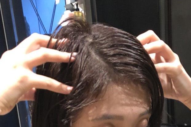 3、毛先→中間→前髪・トップの順に髪の毛につけていく