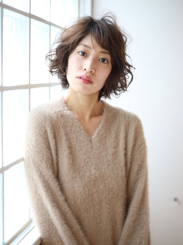 縦ラインをぼかす効果の高いパーマ×ショートスタイルは面長さんにうってつけ。